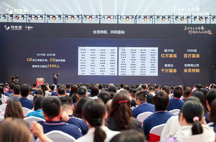 在分享与共同富裕方面,李军先生更是颇为骄傲!李军表示,其持有的利亚德股份从公司初创的100%,到目前的21%多一点,就是在将公司的成长分享给这一场事业的共同参与者。30年来,成功培育了30多名亿万富翁、数百名千万富翁及千名百万富翁;并先后捐资成立了“中华思源工程基金会•繁星教育基金”、“湖南省芷江友好和平发展基金会”、“北京利亚德公益基金会”、“芷江教育基金会”,系统化推进公益事业,累计捐赠款物9000+万元,资助学生17000余名,资助教师1000余人,资助学校350余所……